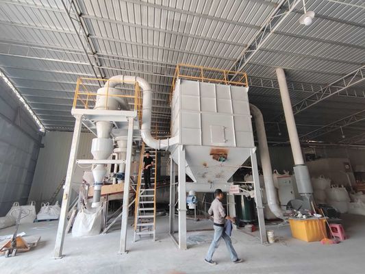 El dispositivo de clasificación está compuesto por un clasificador neumático, un cicone, un ventilador de corriente inducido por el colector, un gabinete de control, etc. Equipado con una segunda entrada de aire y un rotor de perno vertical.los materiales se alimentan en el rodillo inferior bajo la fuerza generada por el ventilador de corriente inducida y luego se mezclan con el primer aire de entrada para dispersar las partículas y luego se llevan a la zona de clasificaciónDebido a la alta velocidad de rotación del rotor clasificador, las partículas se encuentran bajo la fuerza centrífuga producida por el rotor clasificador y la fuerza centrípeta generada por el ventilador de corriente inducida.Cuando la fuerza centrífuga es más fuerte que la fuerza centrípetaLas partículas gruesas caen a lo largo del interior del rodillo.El segundo aire se induce a tamizar el material grueso y se descarga del clasificador.el polvo sobre-molido es recogido por el colector de ciclones e pulsos.