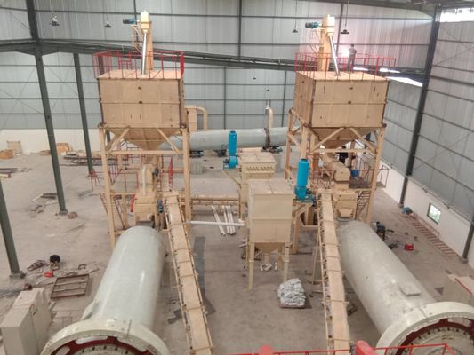 El molino de bolas con equipos clasificadores de aire se utiliza para hacer polvo de arena de cuarzo, todo el conjunto incluye molino de bolas, clasificador de aire, colector de ciclones, colector de polvo de casa de bolsas y así sucesivamente.